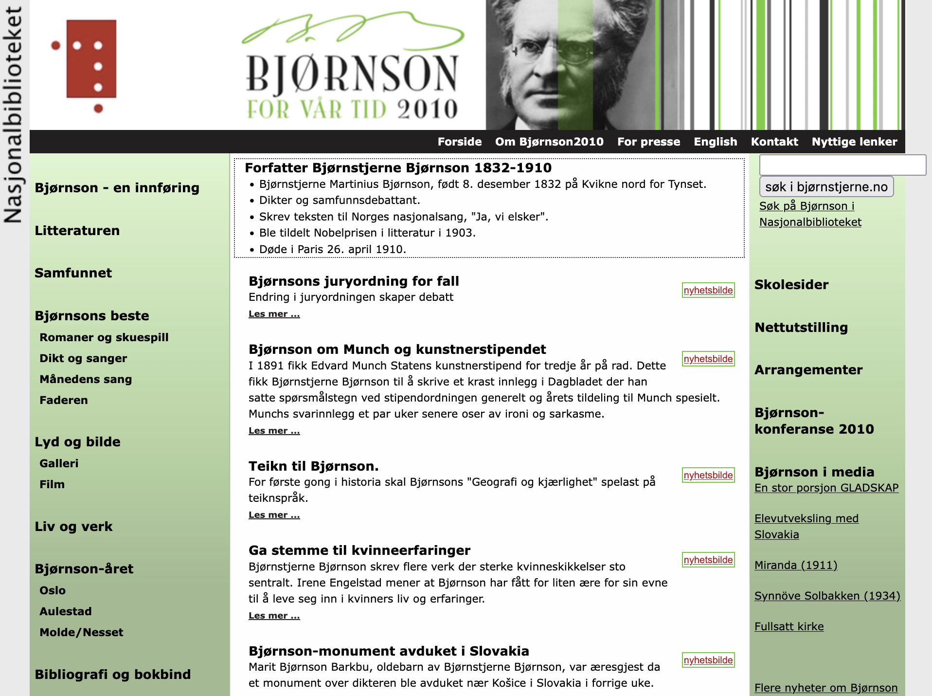 Nettbasert utstilling i forbindelse med 100-årsdagen Bjørnstjerne Bjørnsons død.