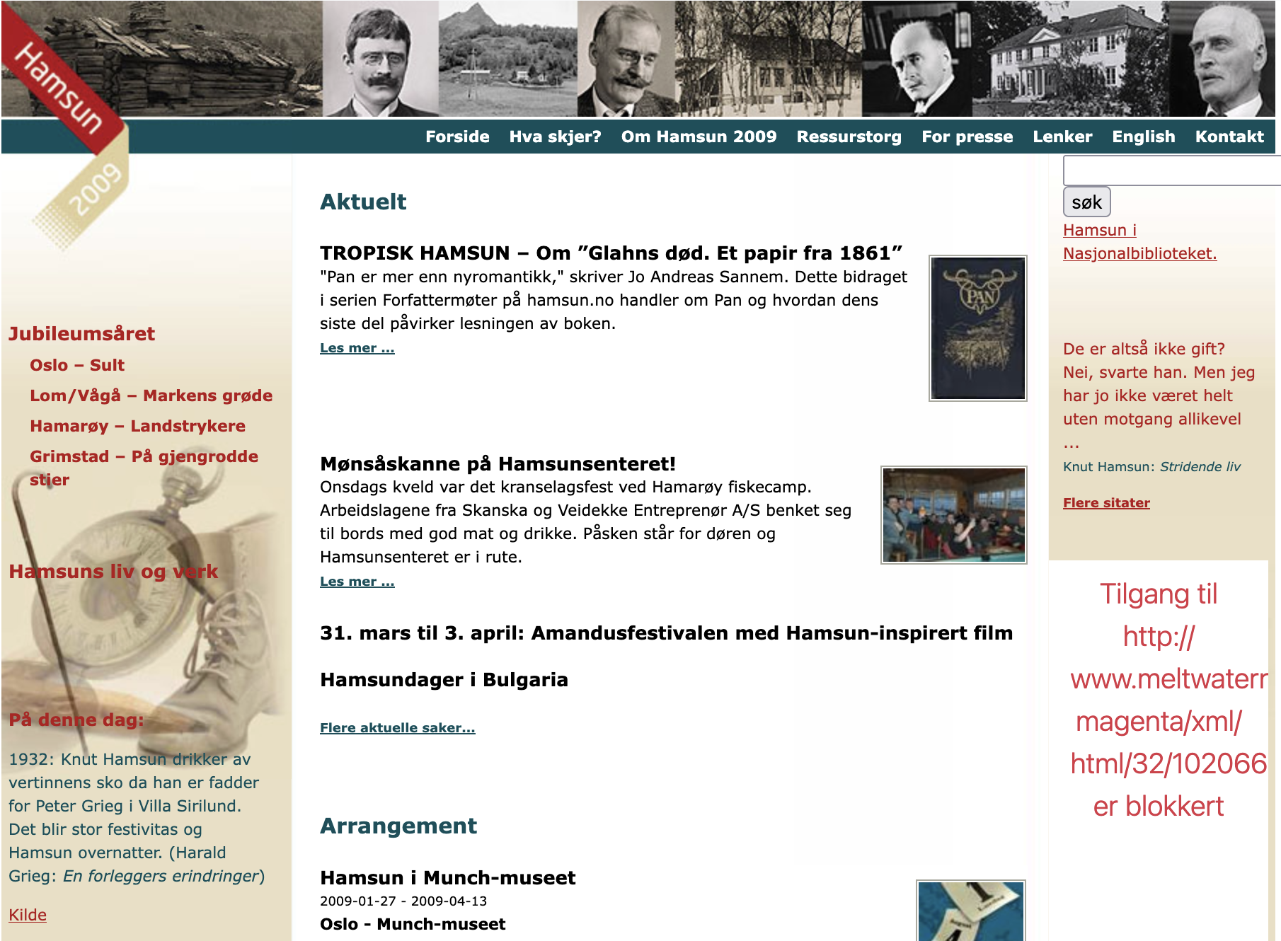 Nettbasert utstilling i forbindelse med 150-årsjubileet for Knut Hamsuns fødsel.